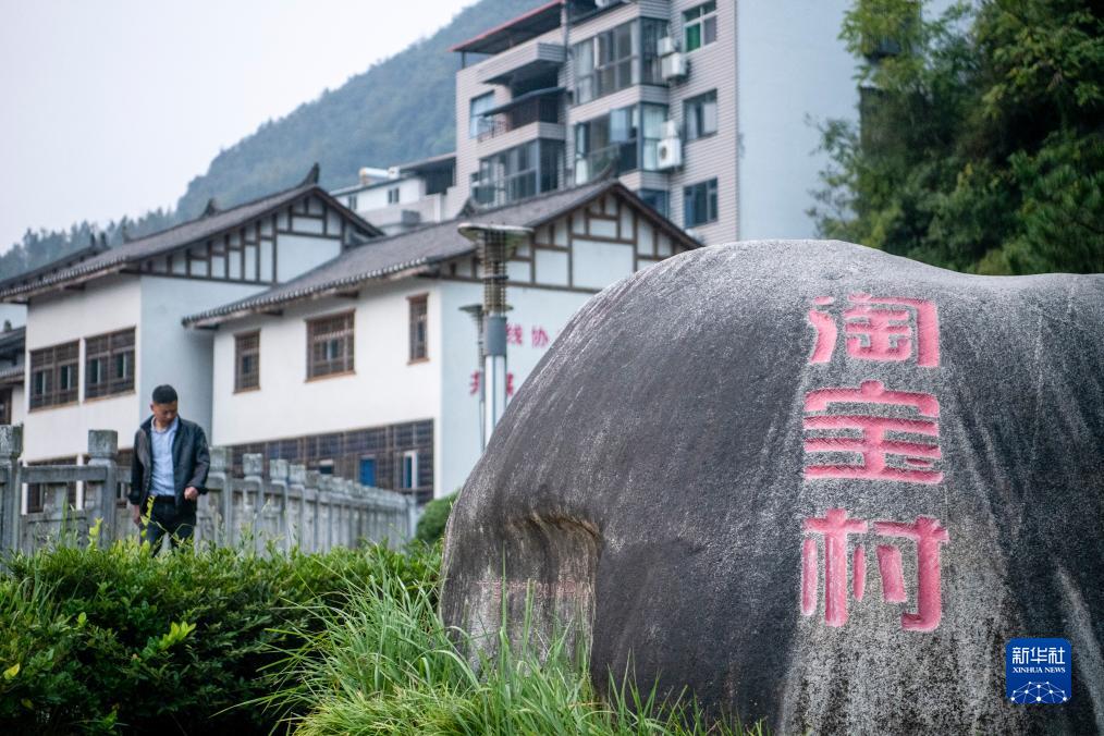 10月11日在湖北省鄖西縣下營村拍攝的“淘寶村”標誌。