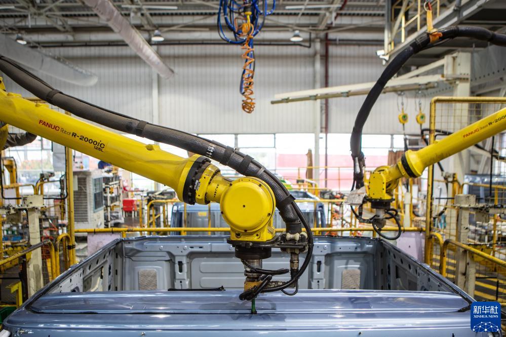 9月26日在位於重慶市兩江新區的上汽紅岩汽車有限公司總裝車間拍攝的自動化生産作業現場。