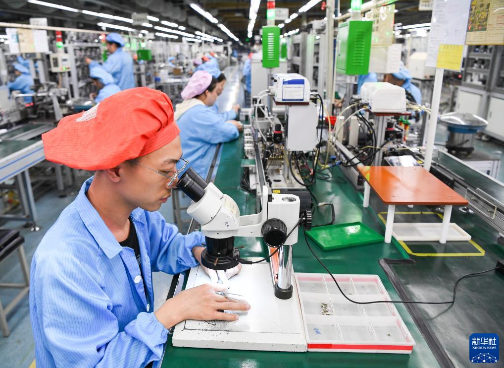 10月12日,在位於重慶市兩江新區的重慶市靈龍電子有限公司,工作人員在線性馬達生産數字化車間作業。