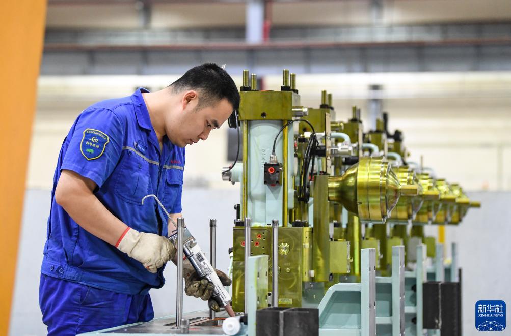 10月11日,在位於重慶市永川區的重慶紅江機械有限責任公司,工作人員在裝配區作業。