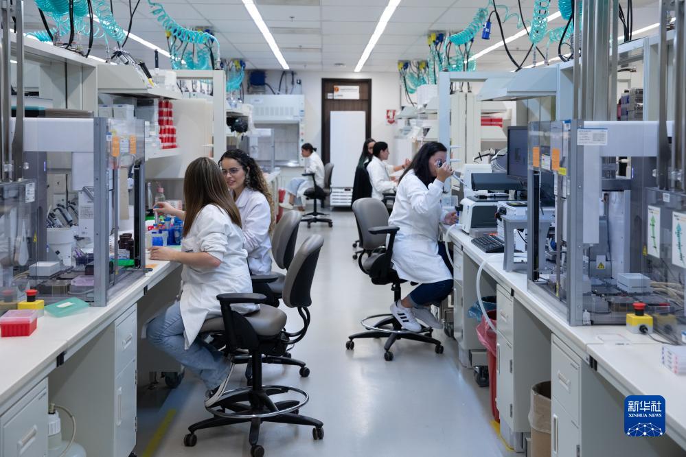 10月11日,科研人員在位於巴西聖保羅州克拉維紐斯的隆平巴西分子生物實驗室內工作。