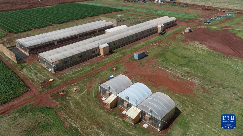 這是10月11日在位於巴西聖保羅州克拉維紐斯拍攝的隆平巴西育種溫室大棚(無人機照片)。