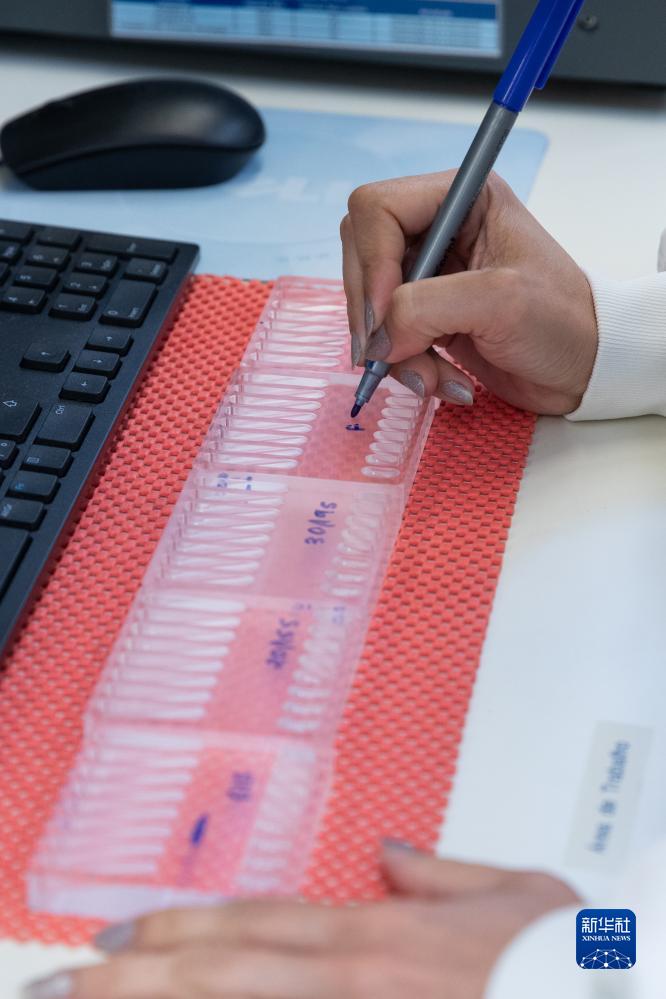 10月11日,科研人員在位於巴西聖保羅州克拉維紐斯的隆平巴西分子生物實驗室內為育種進行編號。
