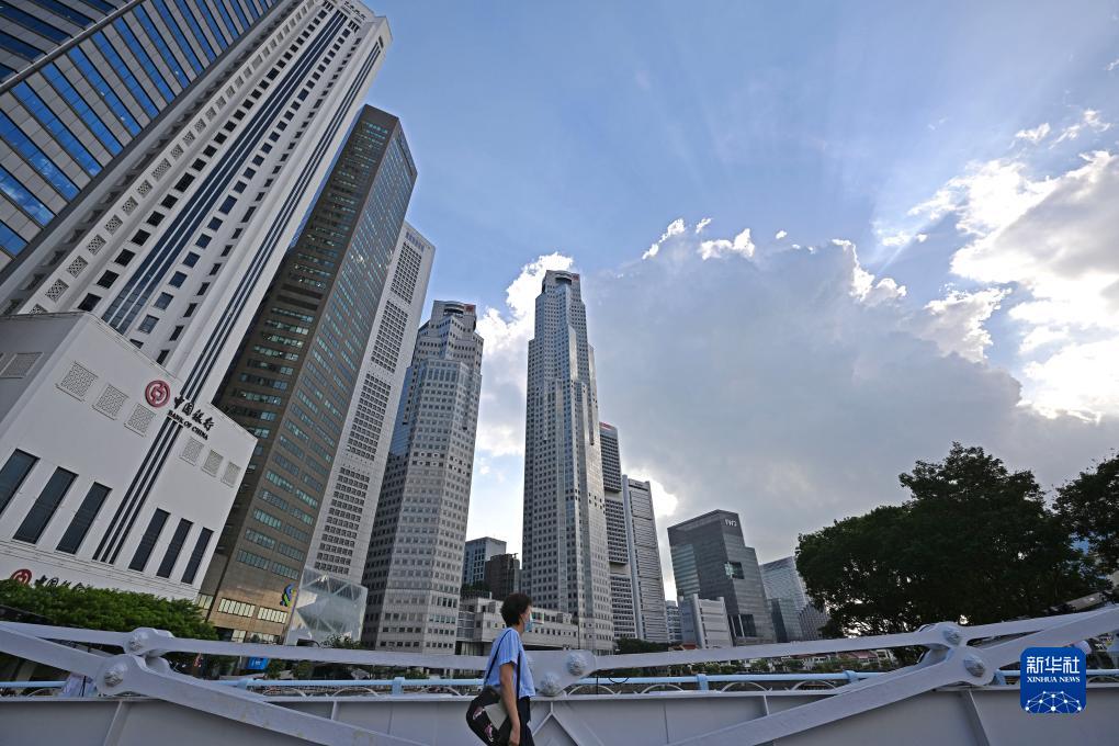 這是2023年9月8日在新加坡拍攝的中國銀行大樓(左)。