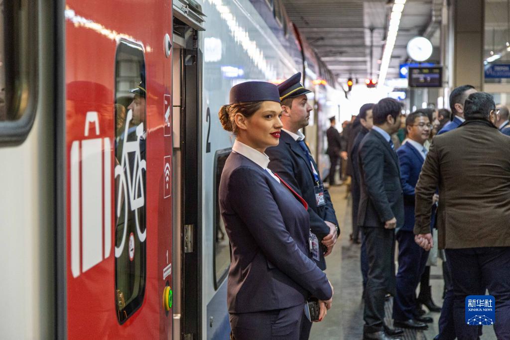 2022年3月19日,在塞爾維亞首都貝爾格萊德,乘務員在等待乘客上車。匈塞鐵路塞爾維亞境內塞首都貝爾格萊德至中北部城市諾維薩德段(貝諾段)當日開通運營。匈塞鐵路連接塞爾維亞首都貝爾格萊德和匈牙利首都布達佩斯,是“一帶一路”重點合作項目。鐵路全線建成通車後,兩國首都間鐵路旅行時間將由8小時縮短到3小時左右。