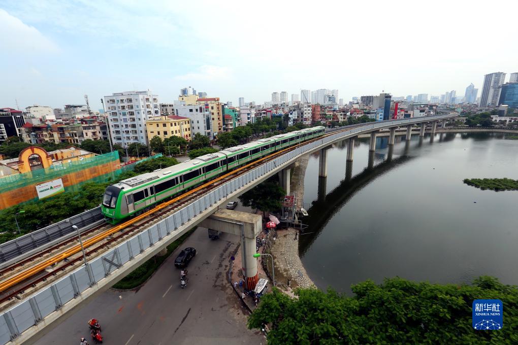 這是2018年8月1日在越南河內拍攝的熱滑測試中的輕軌列車。河內吉靈-河東線輕軌由中國中鐵六局集團有限公司承建,是中越兩國共建“一帶一路”的標誌性項目。