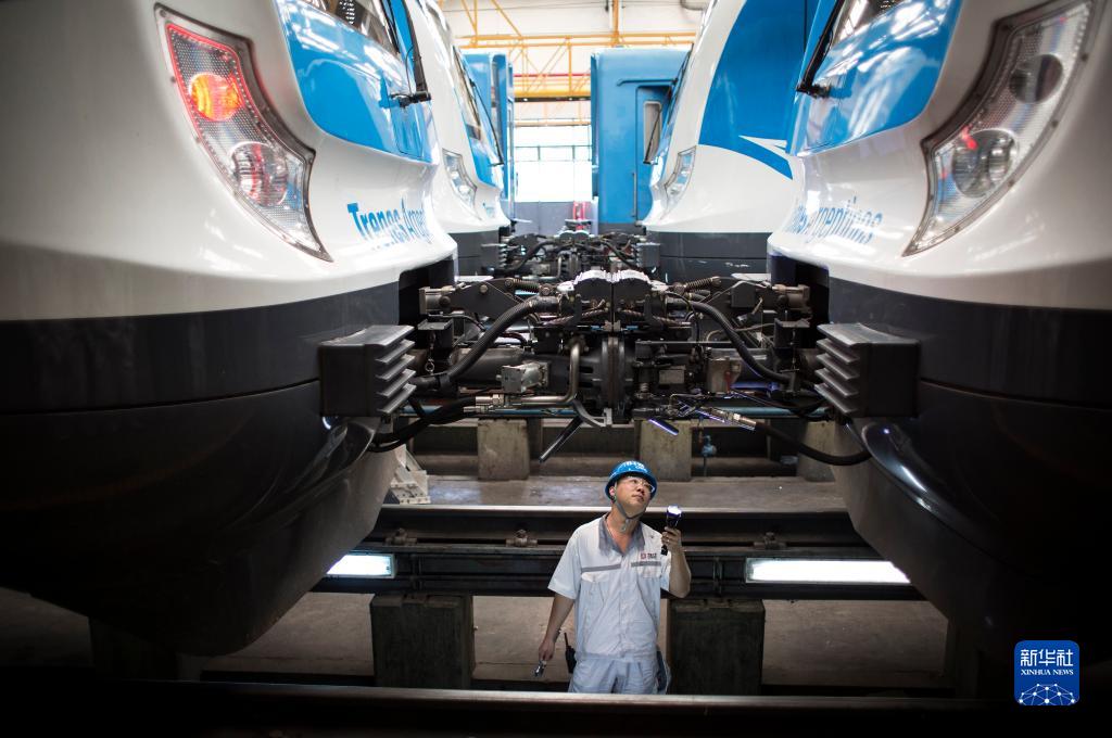 2017年4月11日,在位於阿根廷首都布宜諾斯艾利斯以南的利亞瓦略爾,中方技術人員檢查為羅卡線城際鐵路提供的列車。近年來,在阿根廷,中車製造的各種軌距、各種制式、各種型號的鐵路機車、動車組、客車、貨車和地鐵列車密集交付。