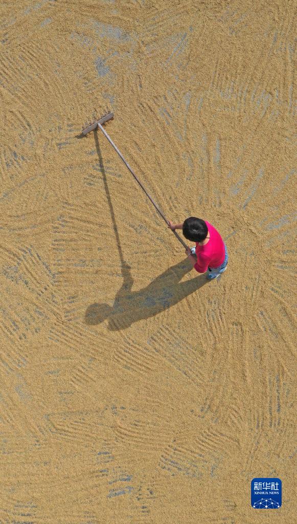 金秋時節,農民忙着收穫晾曬,豐收圖景美如畫。