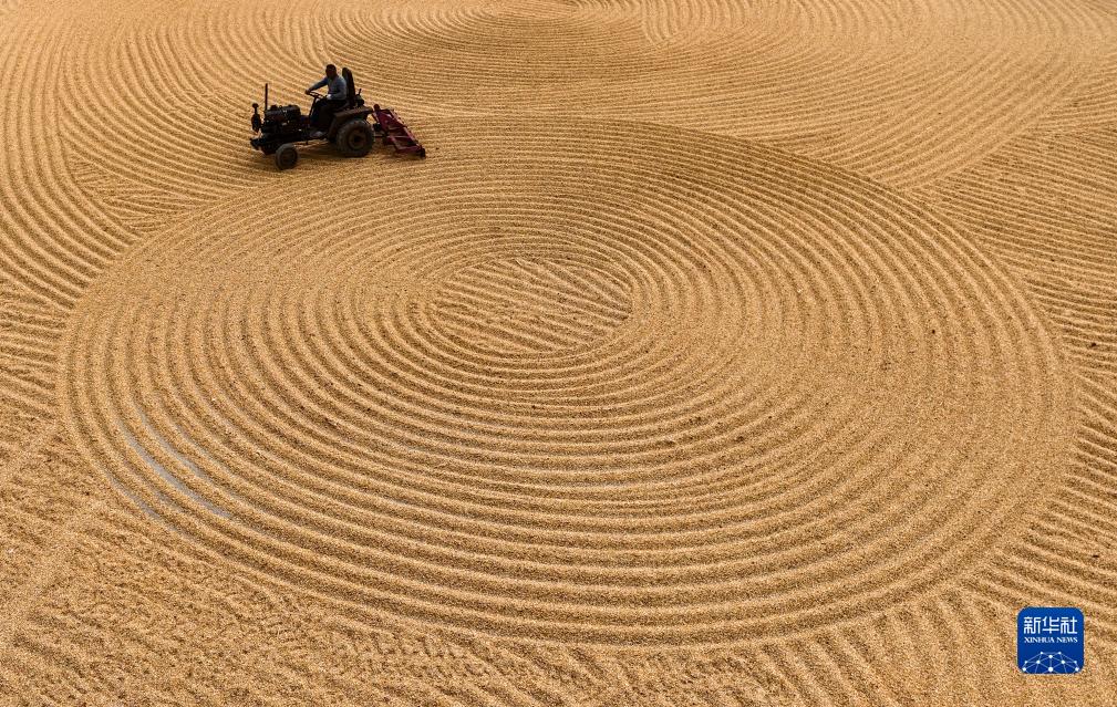 金秋時節,農民忙着收穫晾曬,豐收圖景美如畫。