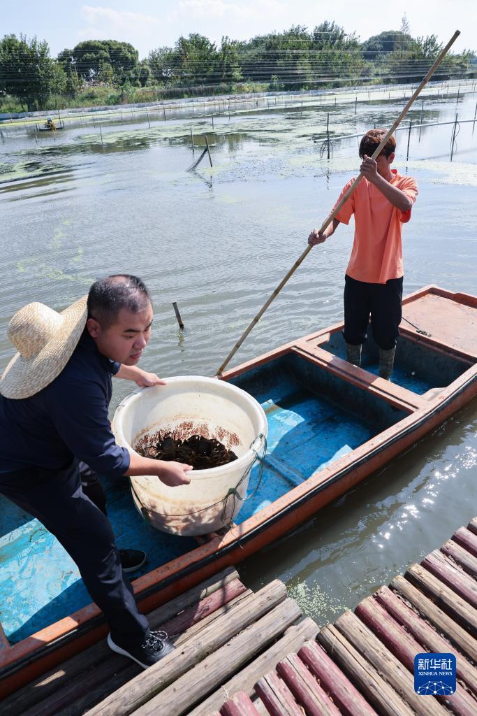 金秋時節正是蝦蟹養殖産業豐收的季節。近日,浙江省湖州市織裏鎮的蟹臨門太湖蟹共富養殖基地的蟹農們都在忙着太湖蟹批量上市。由於今年氣溫相對穩定,産量較去年有10%的增長,每畝太湖蟹産量可達150公斤,畝産值2萬多元。