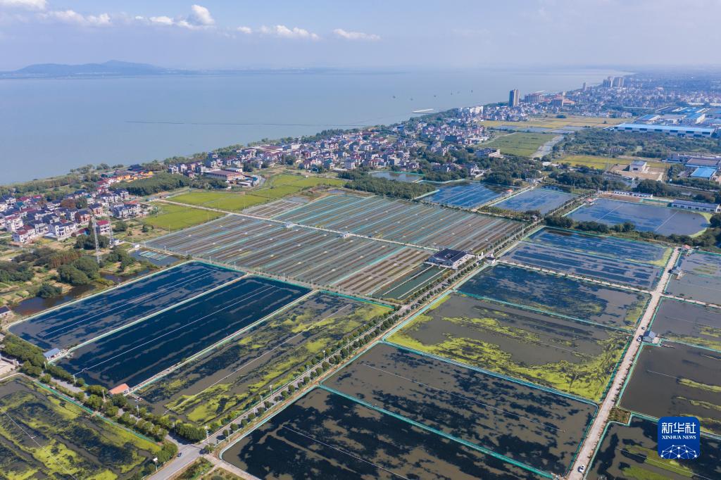 10月12日拍攝的位於太湖南岸的織裏鎮太湖蟹養殖基地(無人機照片)。