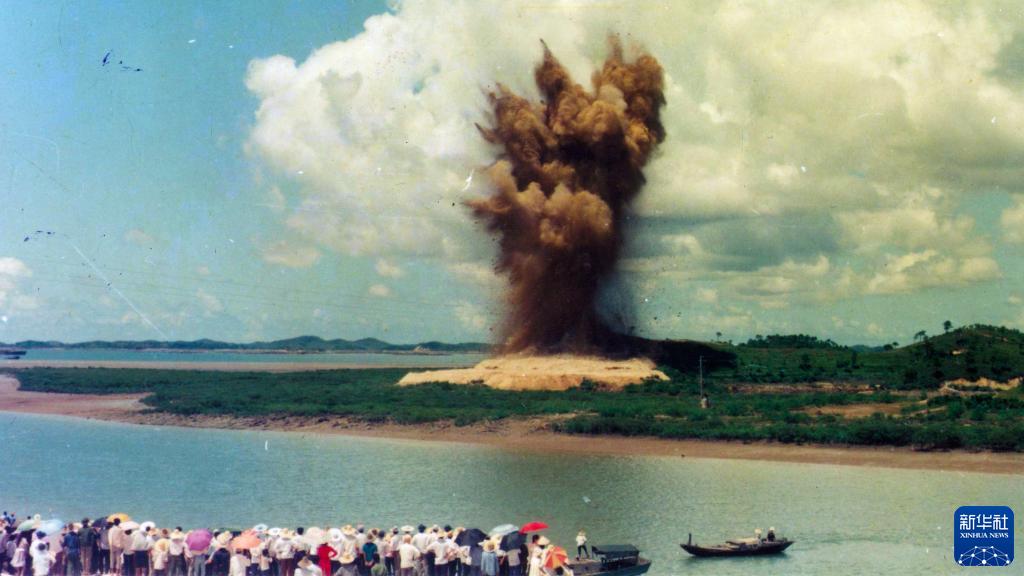 這是欽州港建港第一炮,建設大港的序幕自此拉開(1992年8月1日攝)。