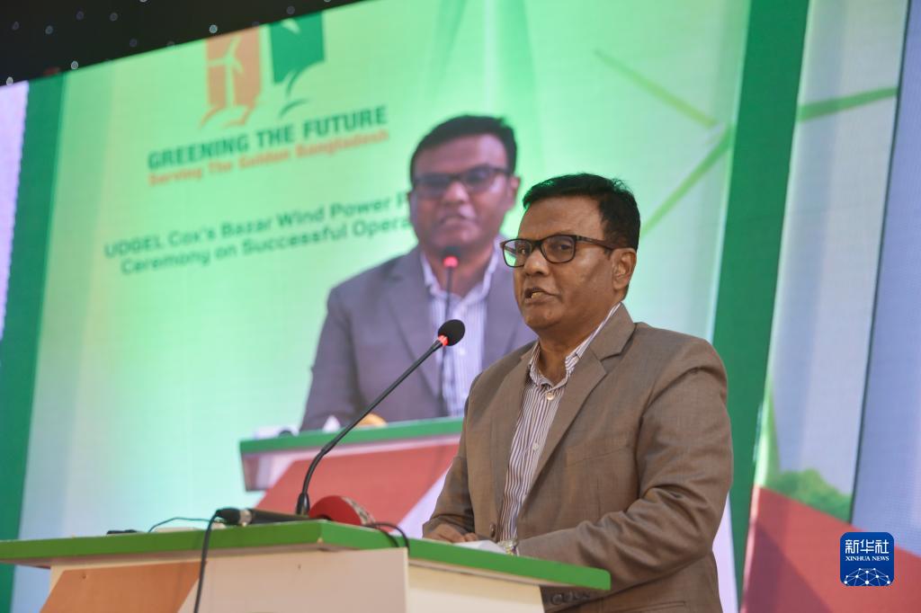 10月12日,在孟加拉國達卡,孟加拉國電力、能源和礦産資源部高級常秘拉赫曼在科克斯巴扎爾風電項目投産儀式上講話。