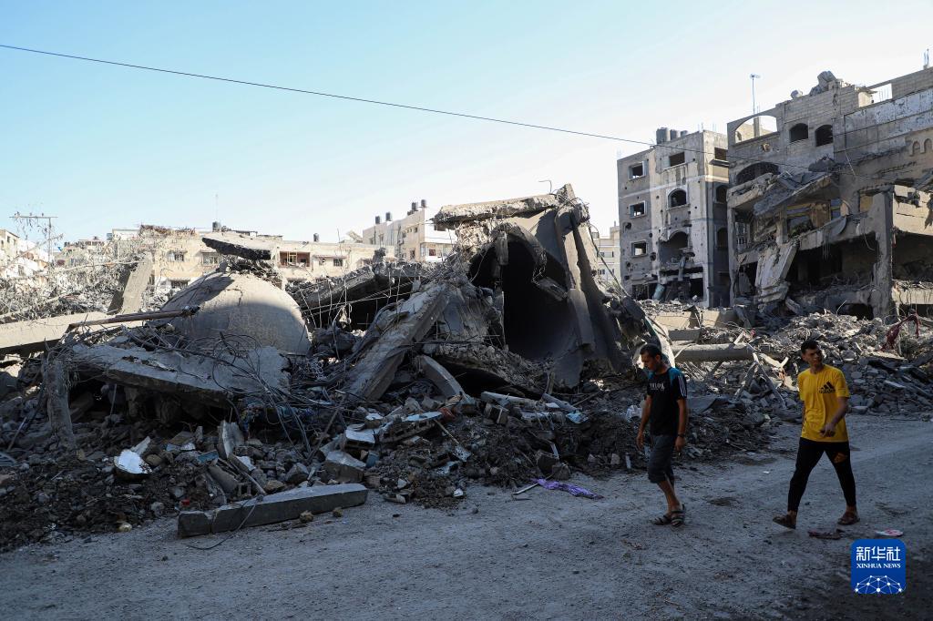 10月12日,在加沙城,人們走過被以色列軍隊空襲炸毀的建築。