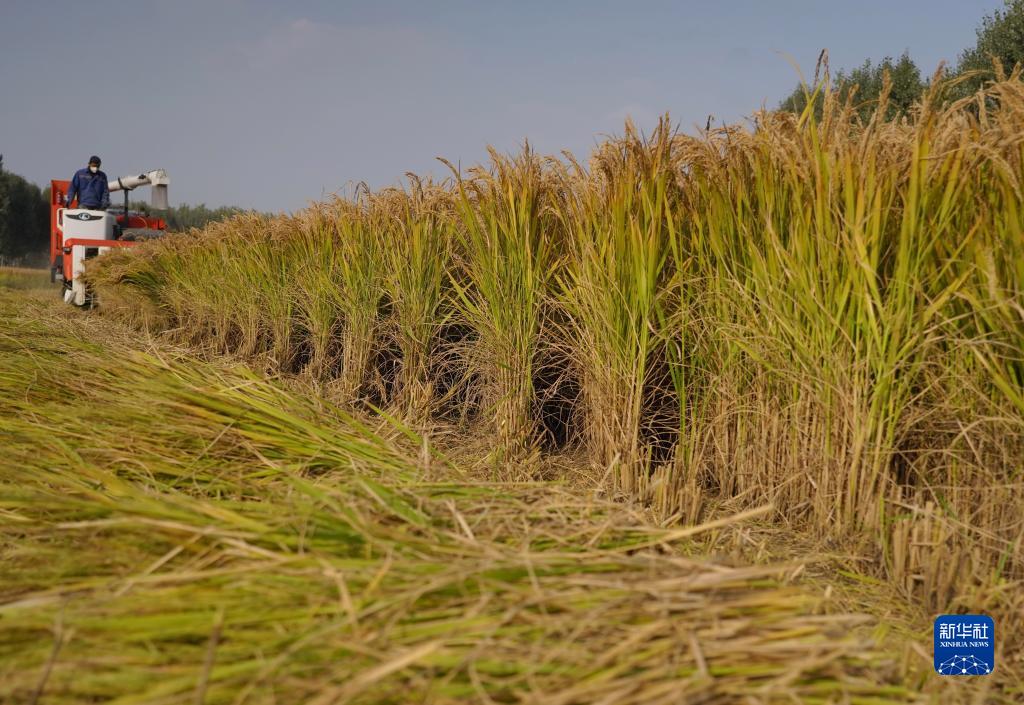 金秋時節,河北省唐山市的水稻迎來收穫季節,農民開始搶抓農時適時收穫,確保顆粒歸倉。