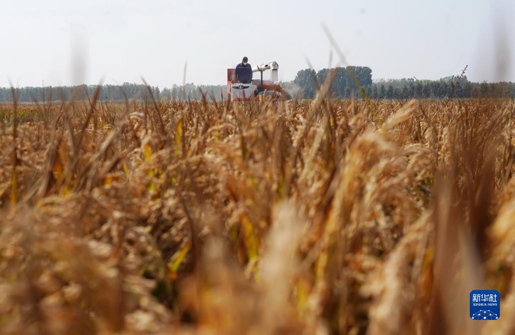 金秋時節,河北省唐山市的水稻迎來收穫季節,農民開始搶抓農時適時收穫,確保顆粒歸倉。