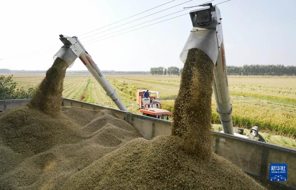 金秋時節,河北省唐山市的水稻迎來收穫季節,農民開始搶抓農時適時收穫,確保顆粒歸倉。