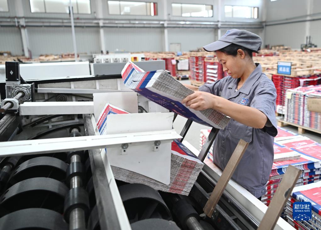 10月12日,河北元氏縣一家新材料生産企業工人在生産車間整理産品。