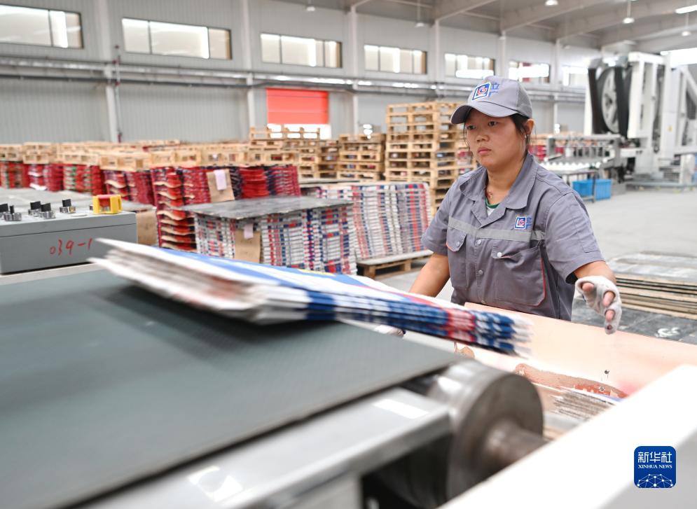 10月12日,河北元氏縣一家新材料生産企業工人在車間生産線上工作。