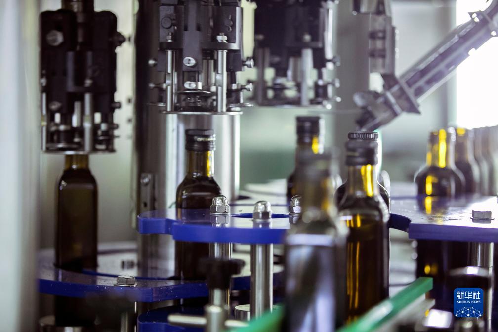 這是10月11日在隴南市武都區一家油橄欖加工企業拍攝的橄欖油灌裝生産線。