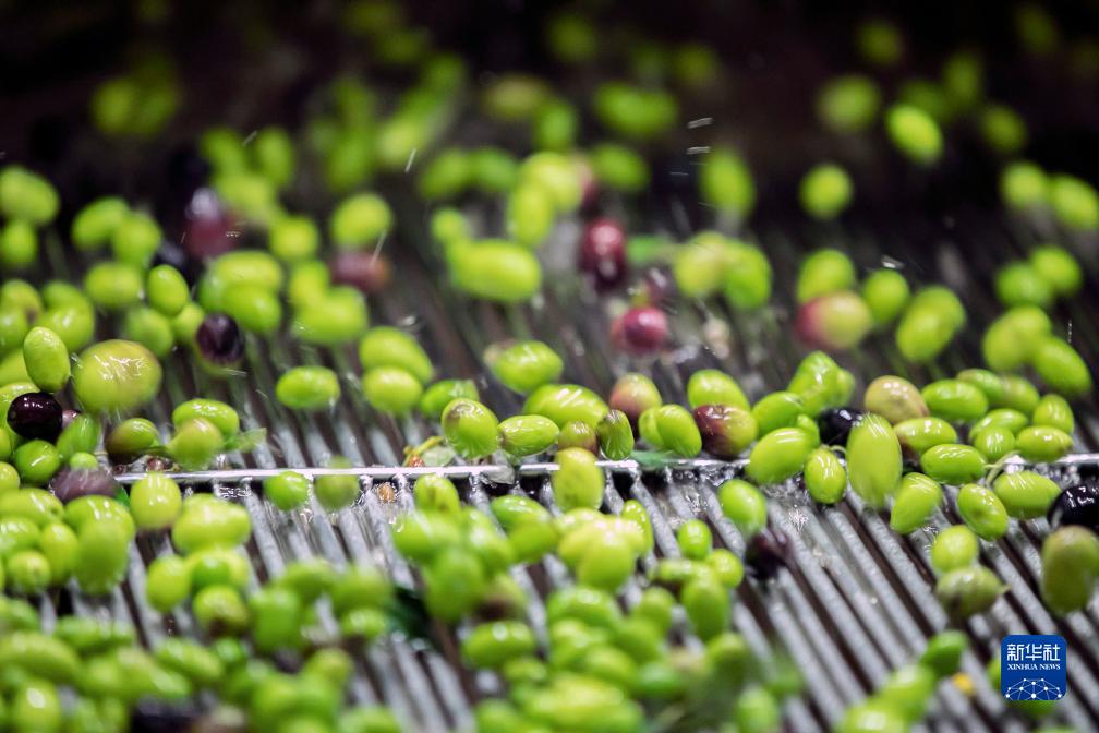 這是10月11日在隴南市武都區一家油橄欖加工企業生産線上拍攝的油橄欖鮮果。