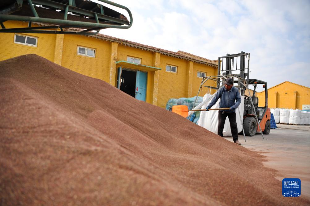 10月12日,河北省沽源縣一家藜麥加工企業的工人在整理收穫的藜麥。