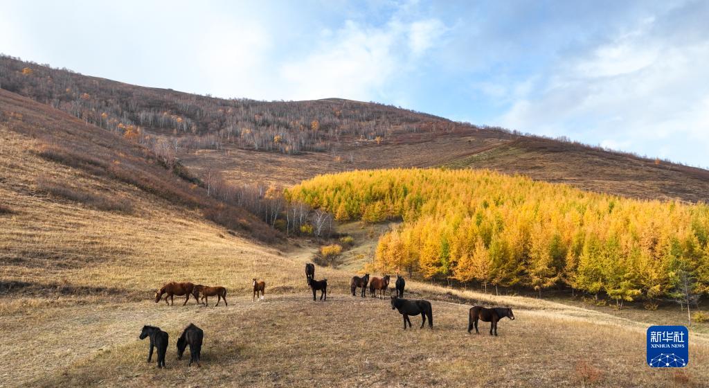 10月13日在內蒙古自治區赤峰市克什克騰旗拍攝的馬群(無人機照片)。