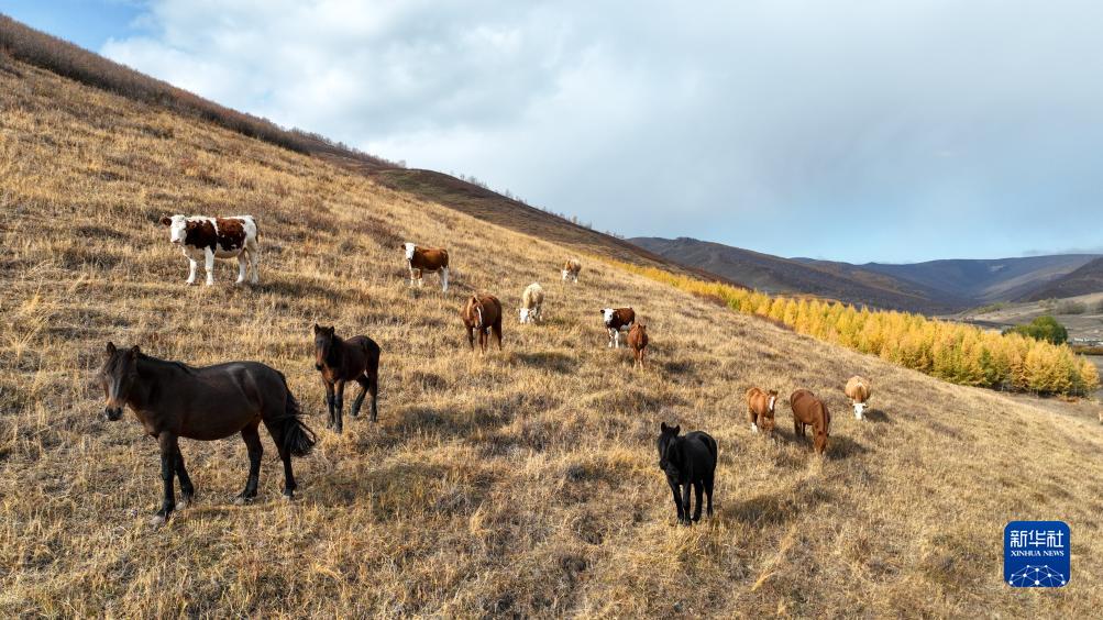 10月13日在內蒙古自治區赤峰市克什克騰旗拍攝的牧群(無人機照片)。