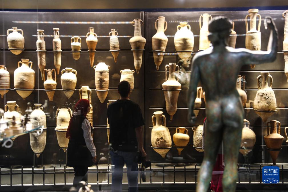 10月12日,人們在埃及亞歷山大希臘羅馬博物館參觀展出的文物。