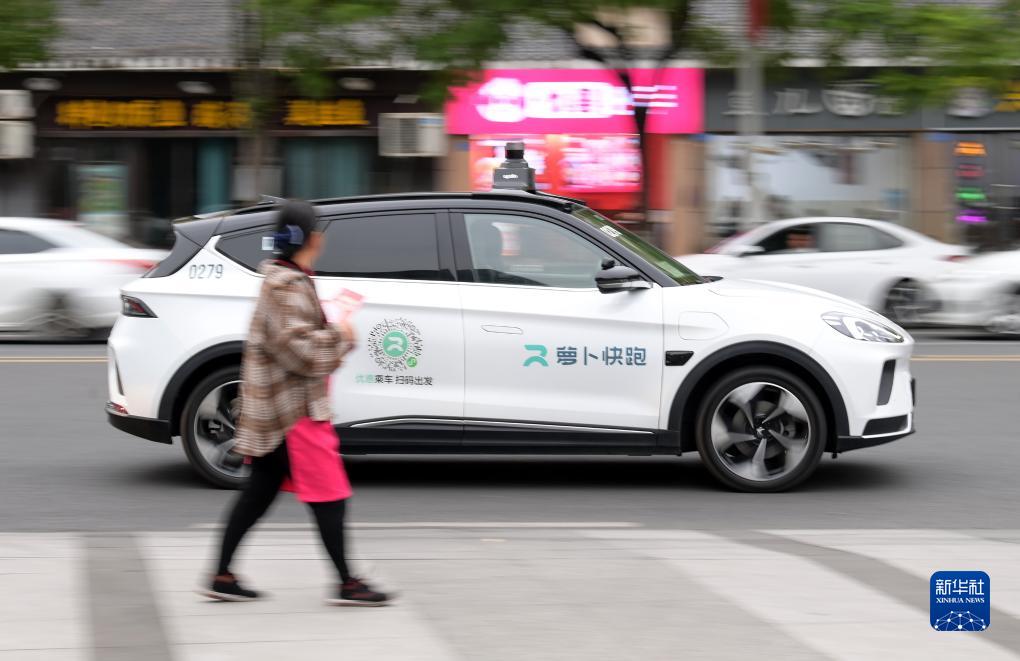 10月11日,一輛無人自動駕駛商業運營的車輛在重慶市永川區道路上行駛。