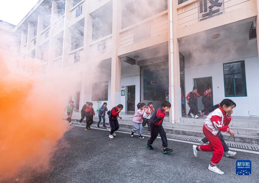10月13日,浙江省湖州市吳興區東林鎮應急管理服務中心聯合東林小學開展“國際減災日”主題活動,學生參加逃生演練。