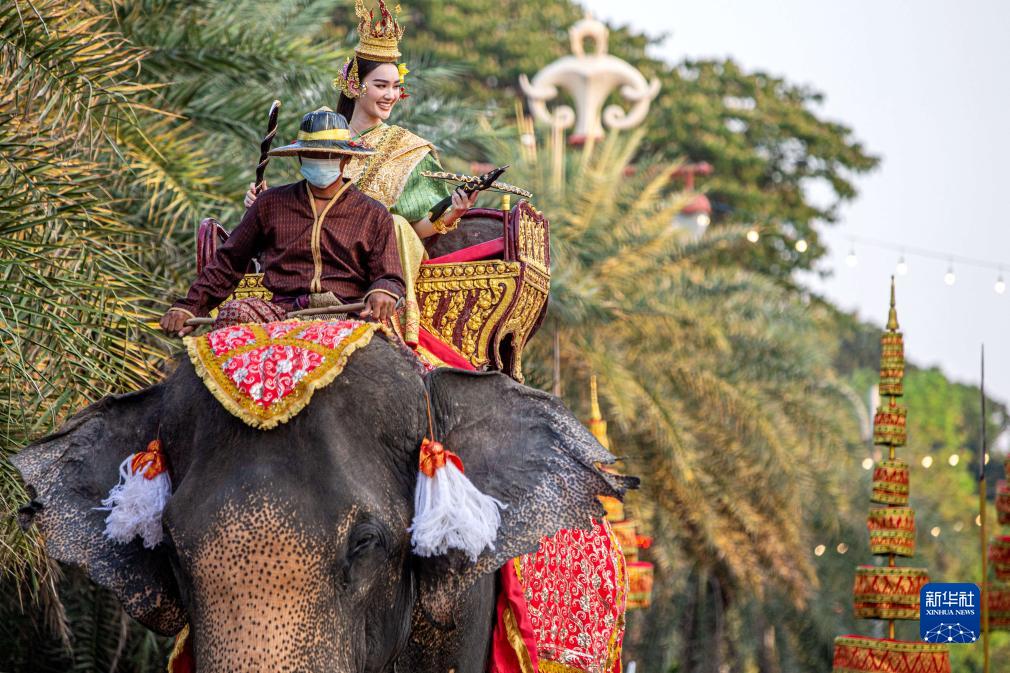 2022年4月13日,在泰國大城府,演員參加街頭巡游活動慶祝泰國傳統新年宋幹節。