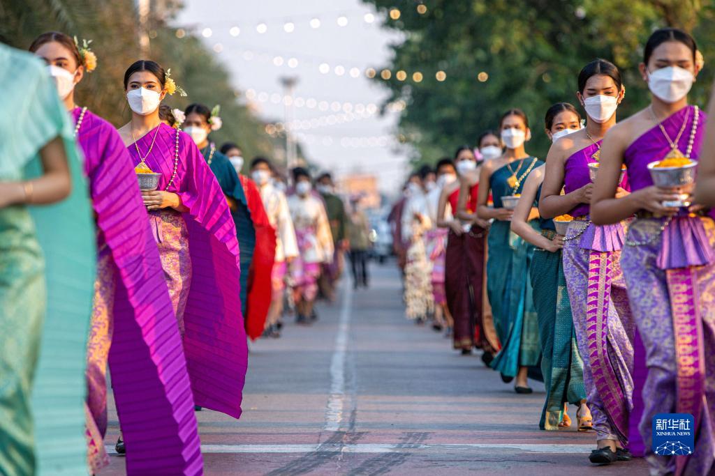 2022年4月13日,在泰國大城府,演員參加街頭巡游活動慶祝泰國傳統新年宋幹節。