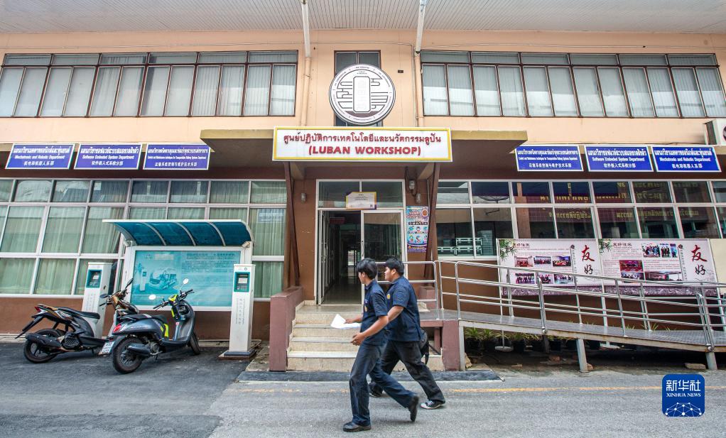 9月29日,在泰國大城技術學院,學生走過魯班工坊。2016年3月,天津渤海職業技術學院在泰國大城府建立中國在海外的首個魯班工坊。