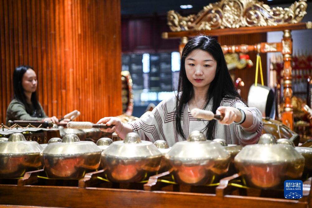 10月12日,在廣西藝術學院,仁迪的學生在練習甘美蘭。