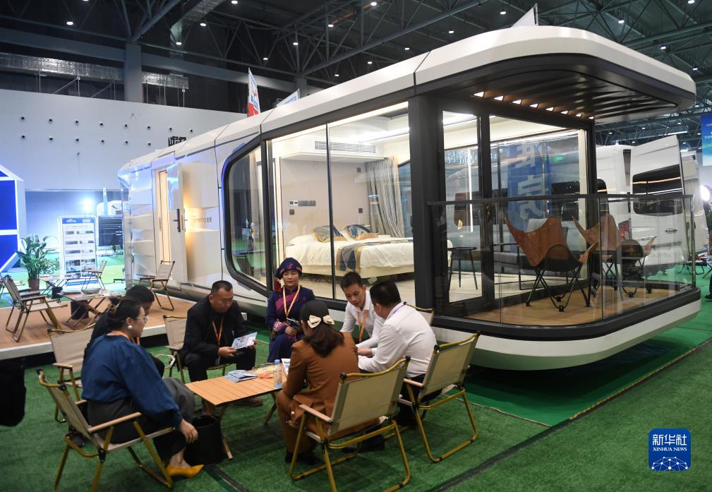 10月13日,在廣西桂林新國際會展中心,人們在文化旅游裝備展區交流。