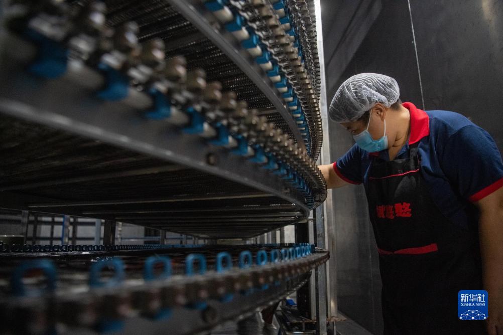 10月11日,在位於重慶市綦江區食品工業園的斌憨憨食品有限公司生産車間內,工作人員在生産線上工作。重慶綦江區在推進傳統産業數字化改造的同時,大力培育戰略性新興産業,以衛星製造和大數據應用為核心的新一代信息技術、新材料、裝備製造、節能環保、消費品工業五個新産業呈現集群化發展的良好態勢。