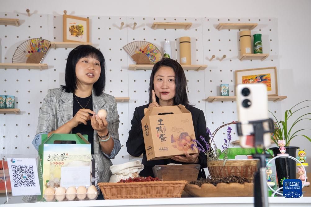10月12日,在重慶市綦江區三角鎮紅岩村,村幹部在“壩壩直播間”內通過網絡直播推介當地特色農産品。重慶綦江區近年來大力發展山地特色高效農業的同時,創新探索“直播+”模式,通過“鄉村振興壩壩直播間”,村幹部、村民當起主播,推介民宿、土貨等,讓不少城裏人慕名而來。