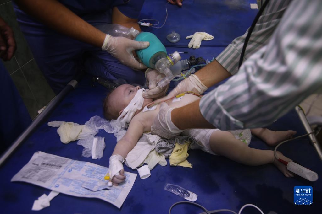 10月13日,在加沙地帶南部城市拉法,一名幼兒在醫院接受治療。