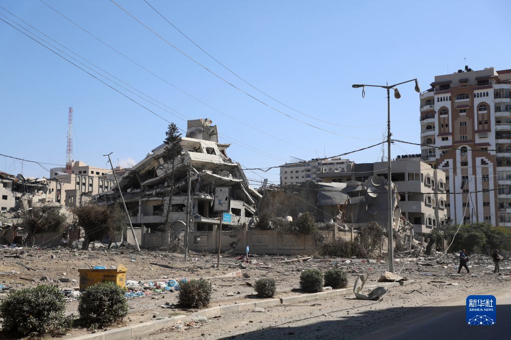這是10月13日在加沙城拍攝的遭以色列空襲損毀的建築。