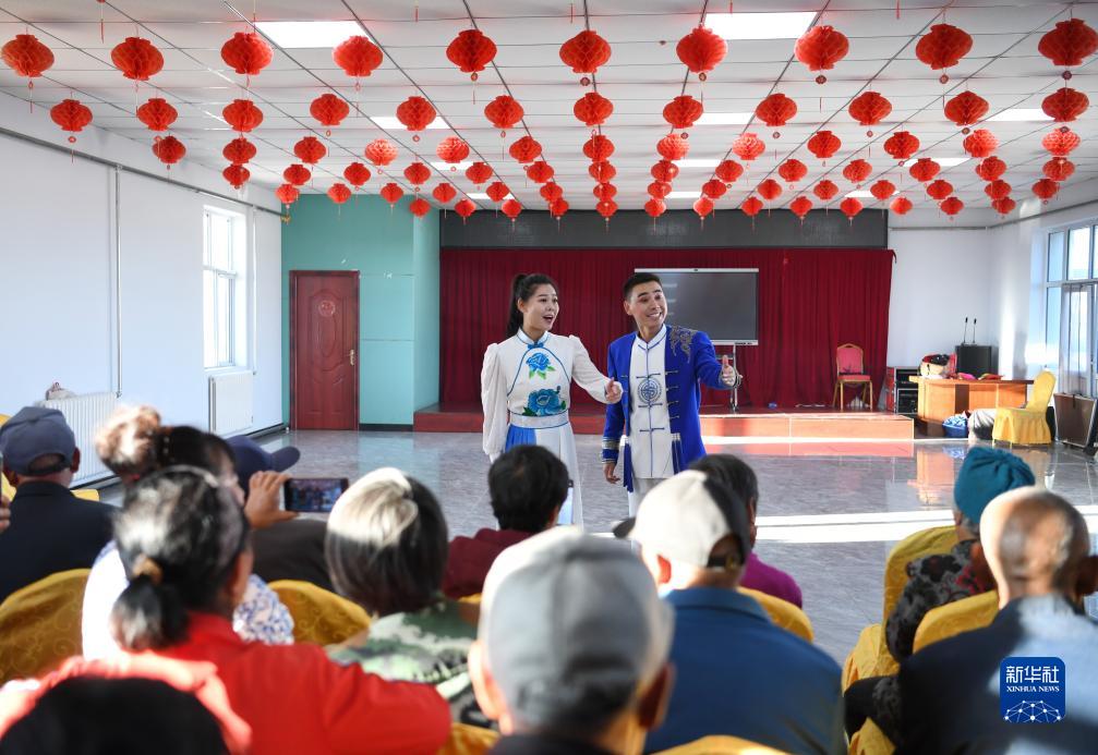 10月13日,河北省康保縣二人&藝術團演員在康保縣大蘿蔔村為群眾表演。