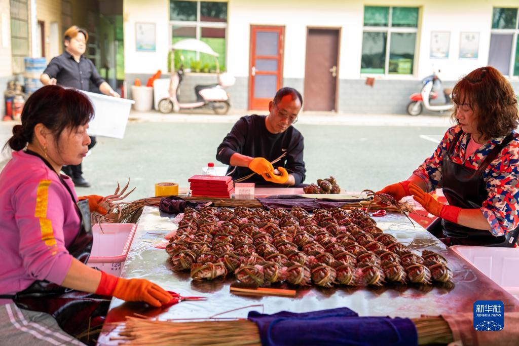 10月14日,在湖南省益陽市河壩鎮沙堡洲村,蟹農在捆綁大閘蟹。