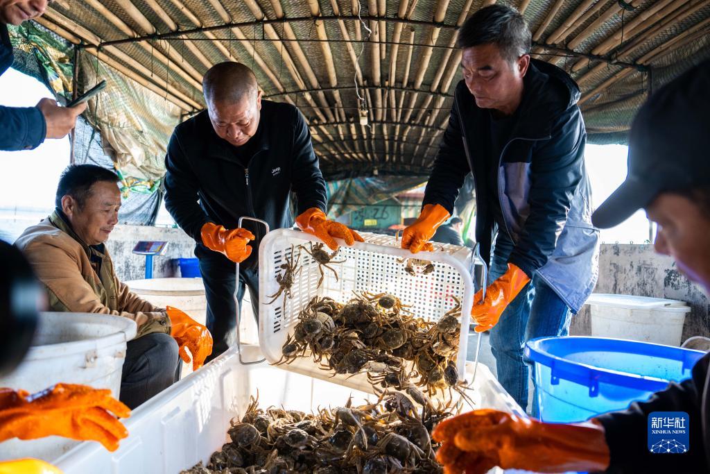 近日,洞庭湖養殖的螃蟹迎來了豐收季,湖南省益陽市大通湖管理區的蟹農正抓緊捕撈,供應各地市場。大通湖是洞庭湖的重要組成部分,水産資源豐富。