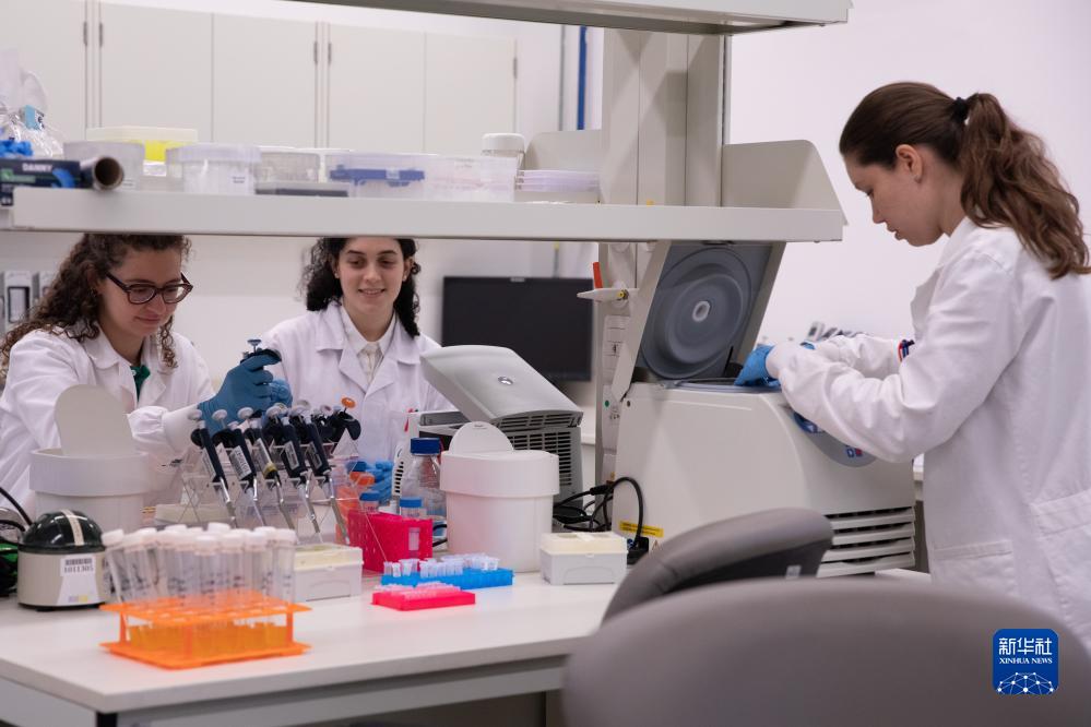 10月11日,科研人員在位於巴西聖保羅州克拉維紐斯的隆平巴西分子生物實驗室內工作。