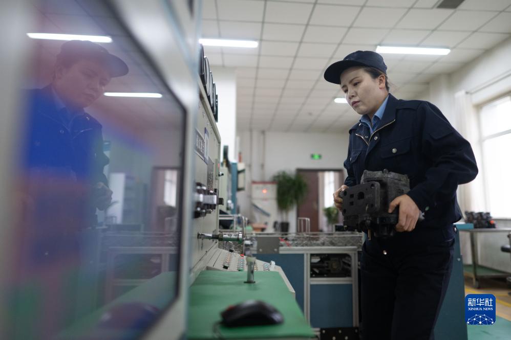 10月12日,在中國鐵路青藏集團有限公司西寧東車輛段制動班組,馬婷在搬運120閥主閥。