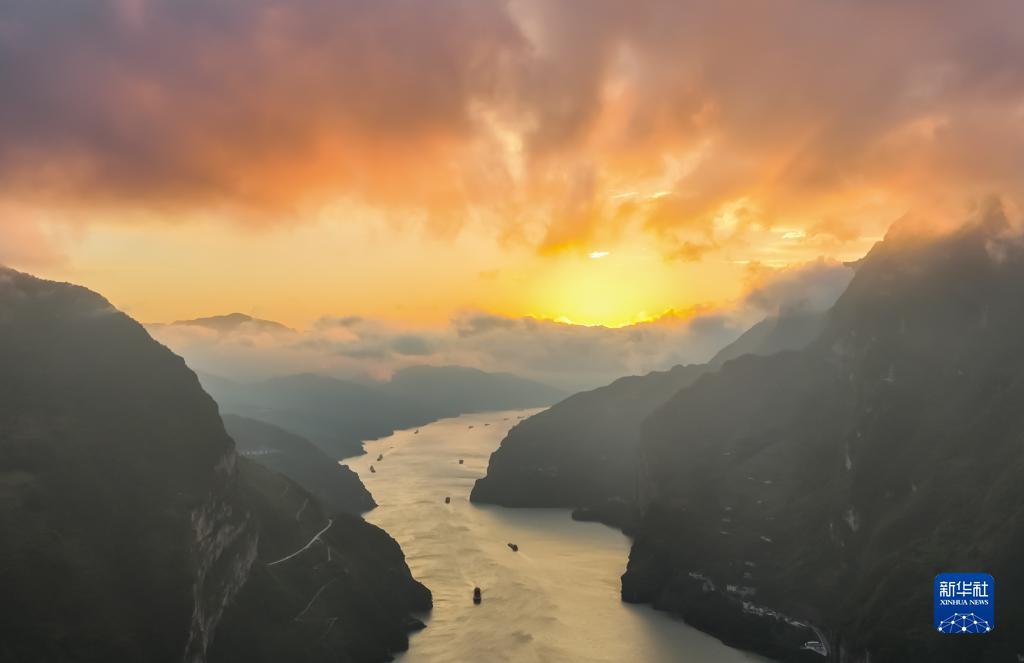 10月8日,船舶行駛在長江三峽西陵峽湖北省宜昌市秭歸縣水域(無人機照片)。