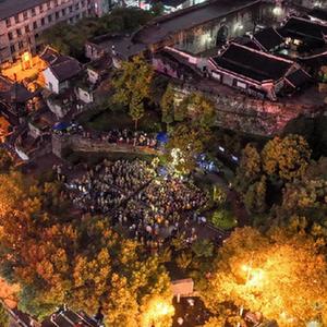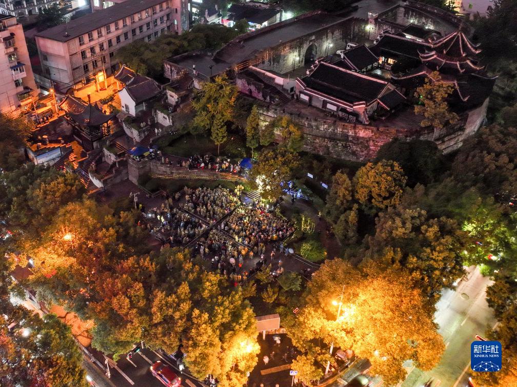 10月13日拍攝的貴陽市文昌閣路邊音樂會現場(無人機照片)。