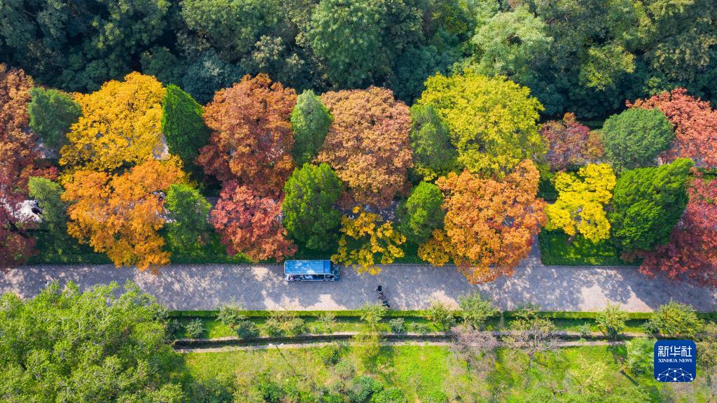 10月14日拍攝的南京明孝陵景區石象路秋景(無人機照片)。