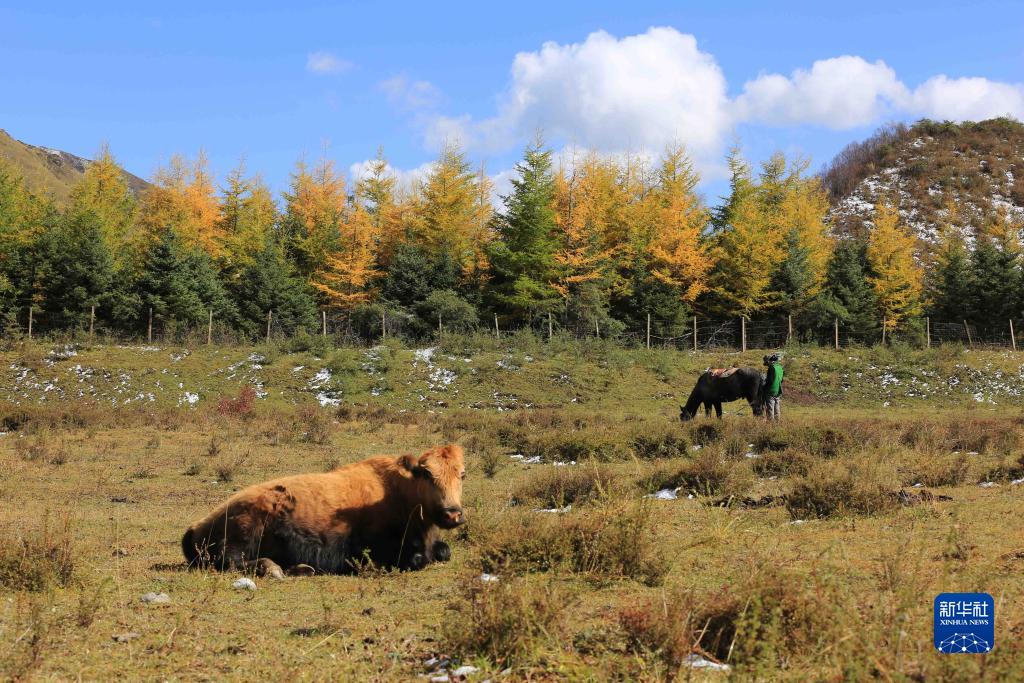 這是10月14日在甘肅省定西市渭源縣境內拍攝的秋景。