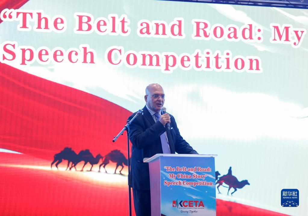 10月13日,在肯尼亞首都內羅畢,肯尼亞國民議會肯中友好小組主席沙比爾在演講比賽現場發言。